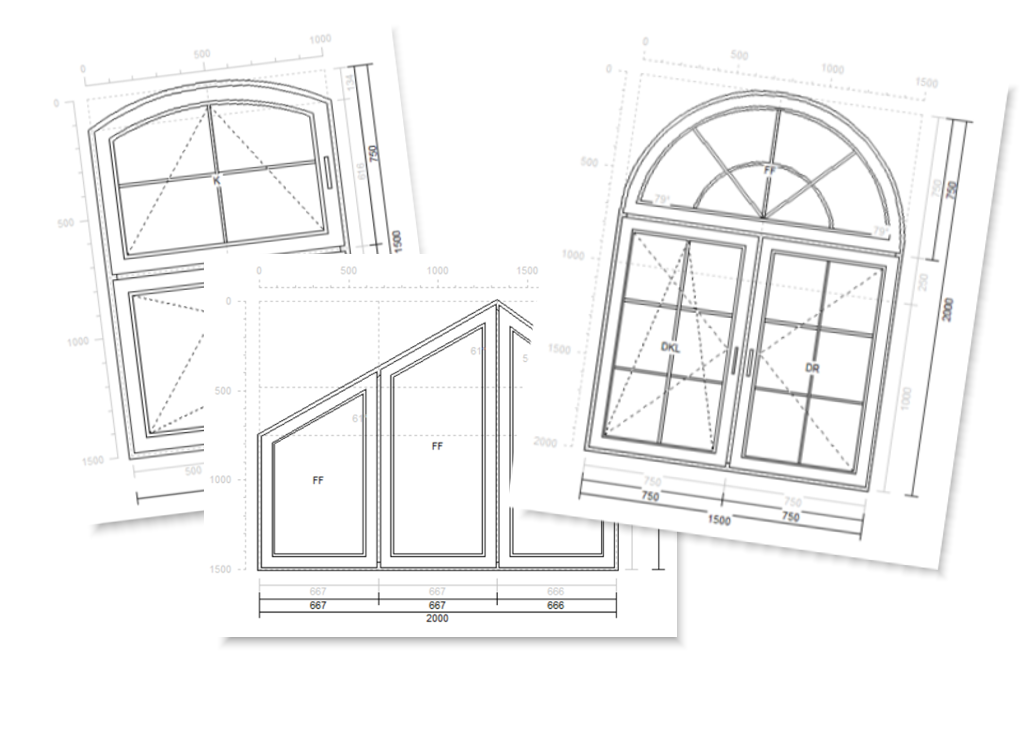 Rysunki Program umożliwia tworzenie rysunków okien prostokątnych, łukowych, okrągłych, skośnych, a także rolet.
